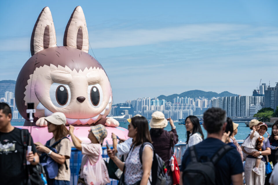 An inflatable Labubu in Victoria Harbour on October 25, 2025, in Hong Kong. | Hou Yu/China News Service/VCG via Getty Images